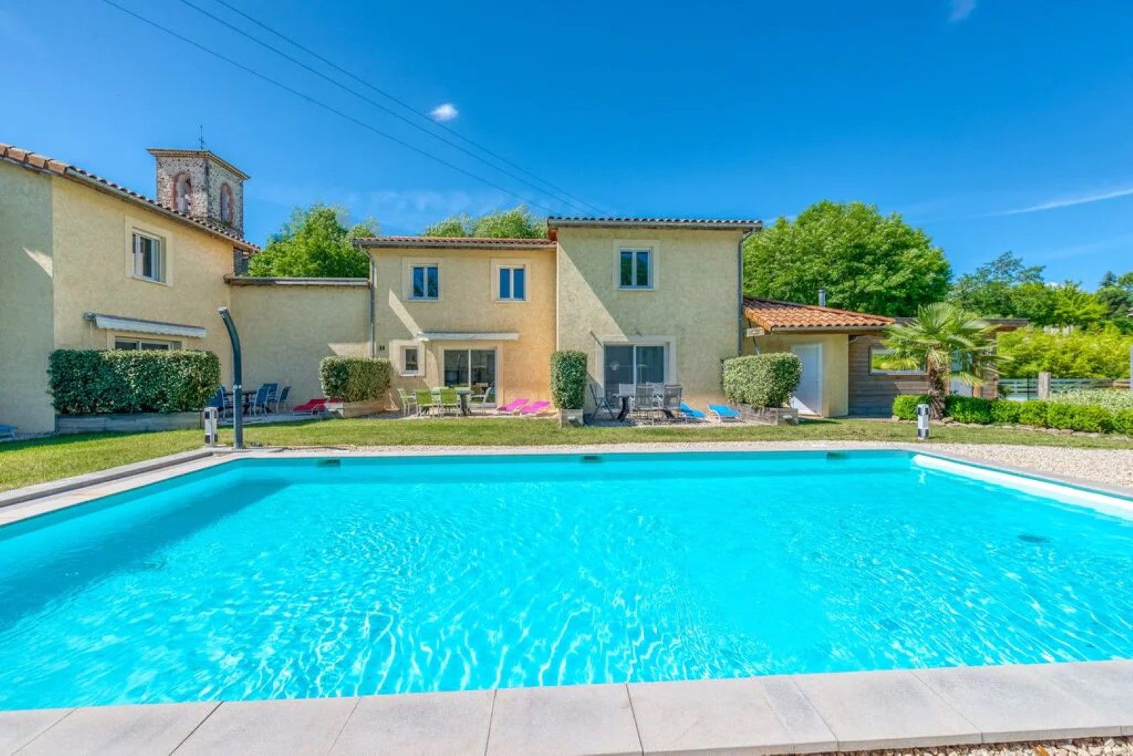 Dit is het huisje 6 met privé terras en publiek zwembad.