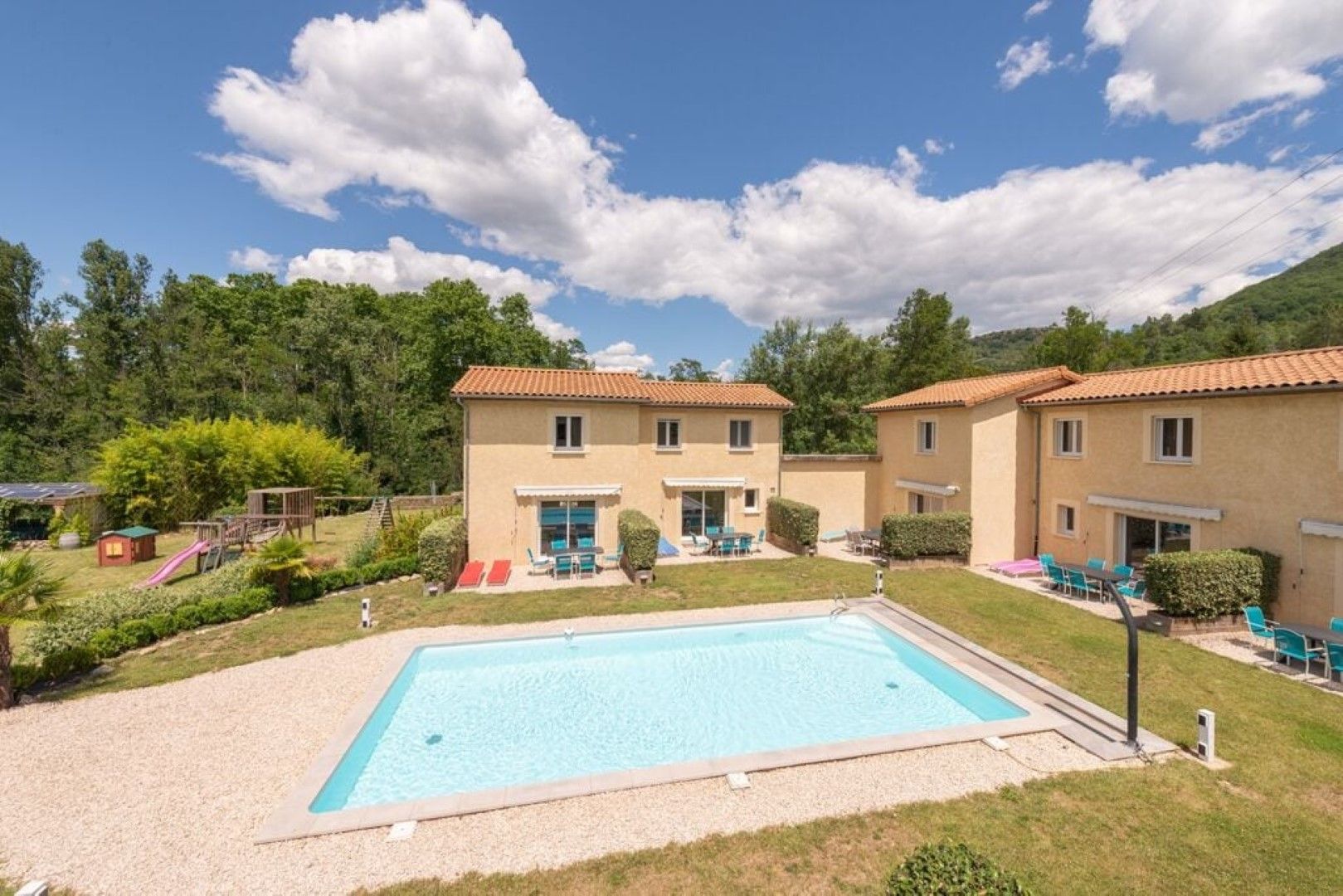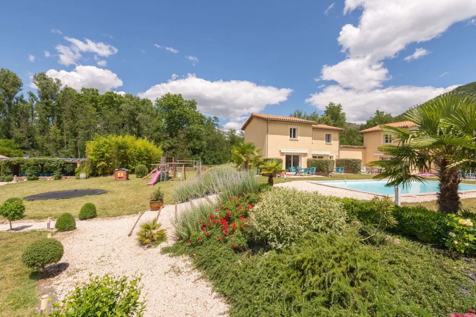 Je kan volledig genieten van een ruime boomhaard, speeltuin en aanpalend prachtige rivier.